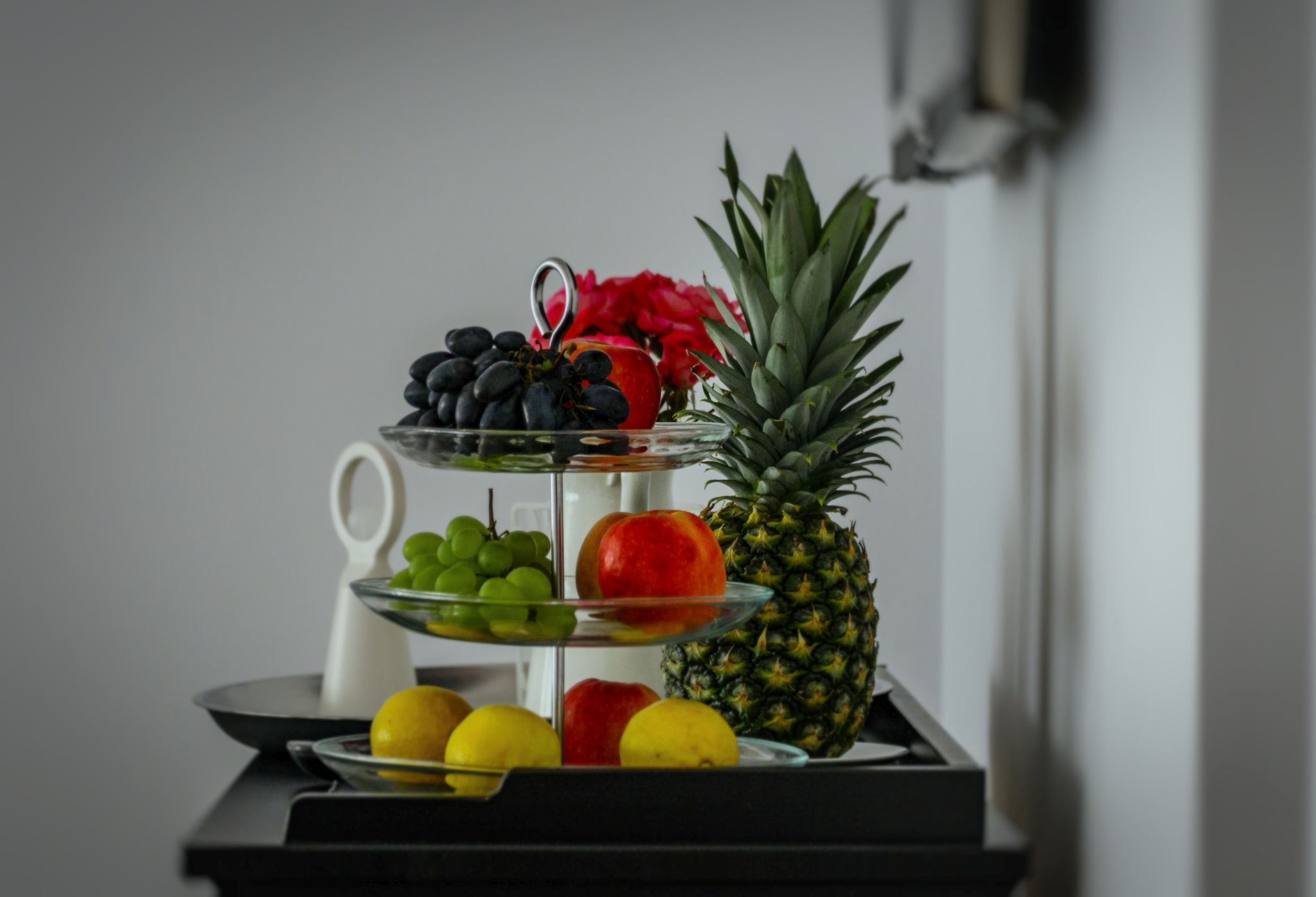 cat si in parcarea situata in curtea proprietatii. Camerele sunt dotate cu paturi confortabile (boxspring), iluminat ambiental si local cu led, TV cu ecran plat cu canale prin cablu, frigider si seif. Baile sunt utilate modern cu cabine de dus generoase, uscator de par si articole de toaleta si dus gratuite. Proprietatea are o bucatarie moderna, complet utilata cu frigidere si congelatoare, masina de spalat vasele, cuptoare, espresor automat cu cafea boabe, filtru de cafea, plita cu inductie, hota unde se prepara micul dejun si la cerere si alte mese exclusiv pentru ospetii nostri. In salonul sufragerie dotat si cu TV si o canapea confortabila se serveste masa si este organizat un bar permanent unde clientii isi pot prepara ceai, cafea instant si pot servi fructe proaspete din partea casei.